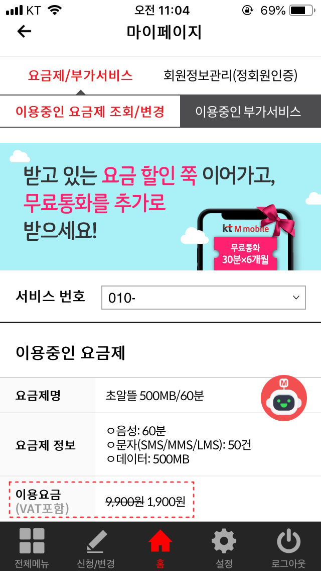 KT엠모바일 알뜰폰 요금제 변경하는 방법 + 고객센터