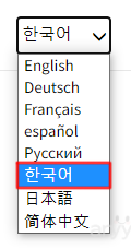 기본적으로 언어가 영어로 되어서 우측 상단에 위치한 언어를 ' 한국어 '로 설정해주시면 더욱 편리하게 이용하실 수 있습니다.